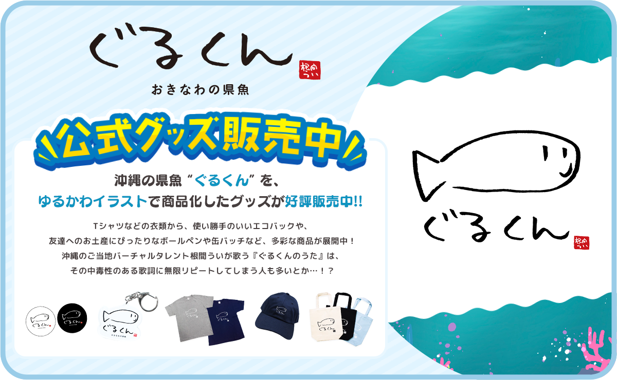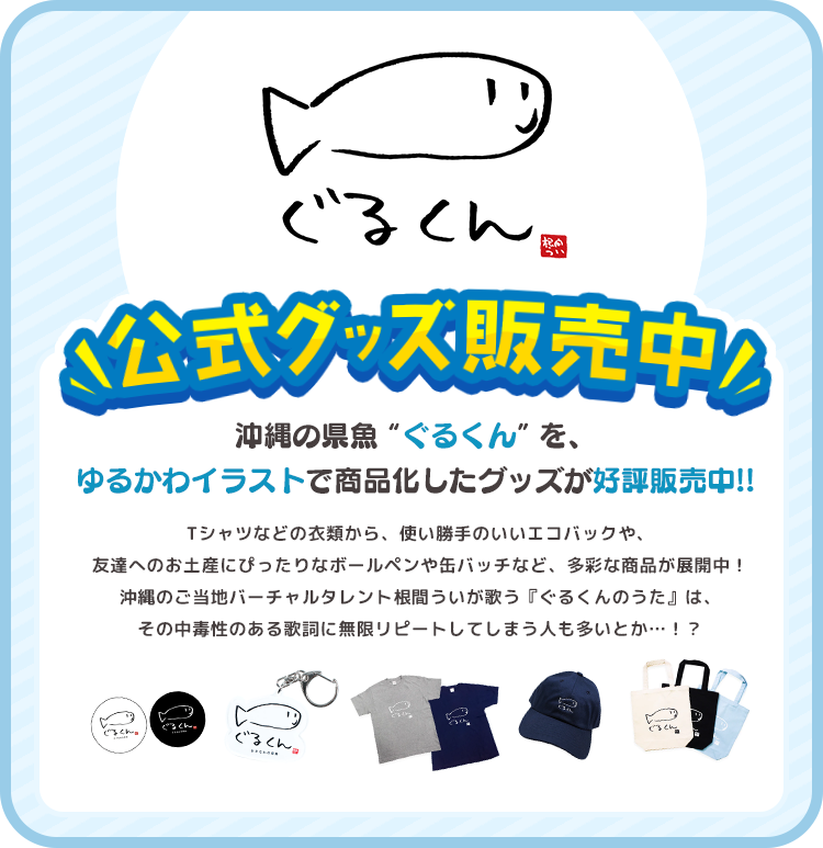 おきなわ部が運営するオフィシャルオンラインショップだゴン! 根間ういグッズをはじめ、話題の沖縄新定番アイテムぐるくんグッズ、琉球ガラス・マースお守りといった、おきなわ部とコラボした沖縄伝統工芸品などなど、様々なグッズを豊富に取り扱っておりますゴン!! 当店でしか買えない限定グッズもありますので、ぜひお立ち寄りくださいゴン!